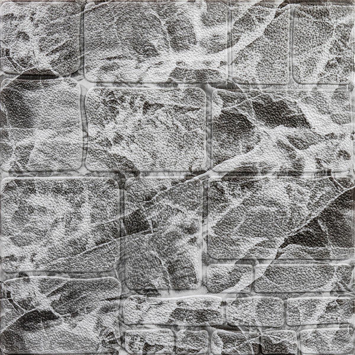 Самоклеящаяся декоративная 3D панель камень черно-белый мрамор 700х700х7мм