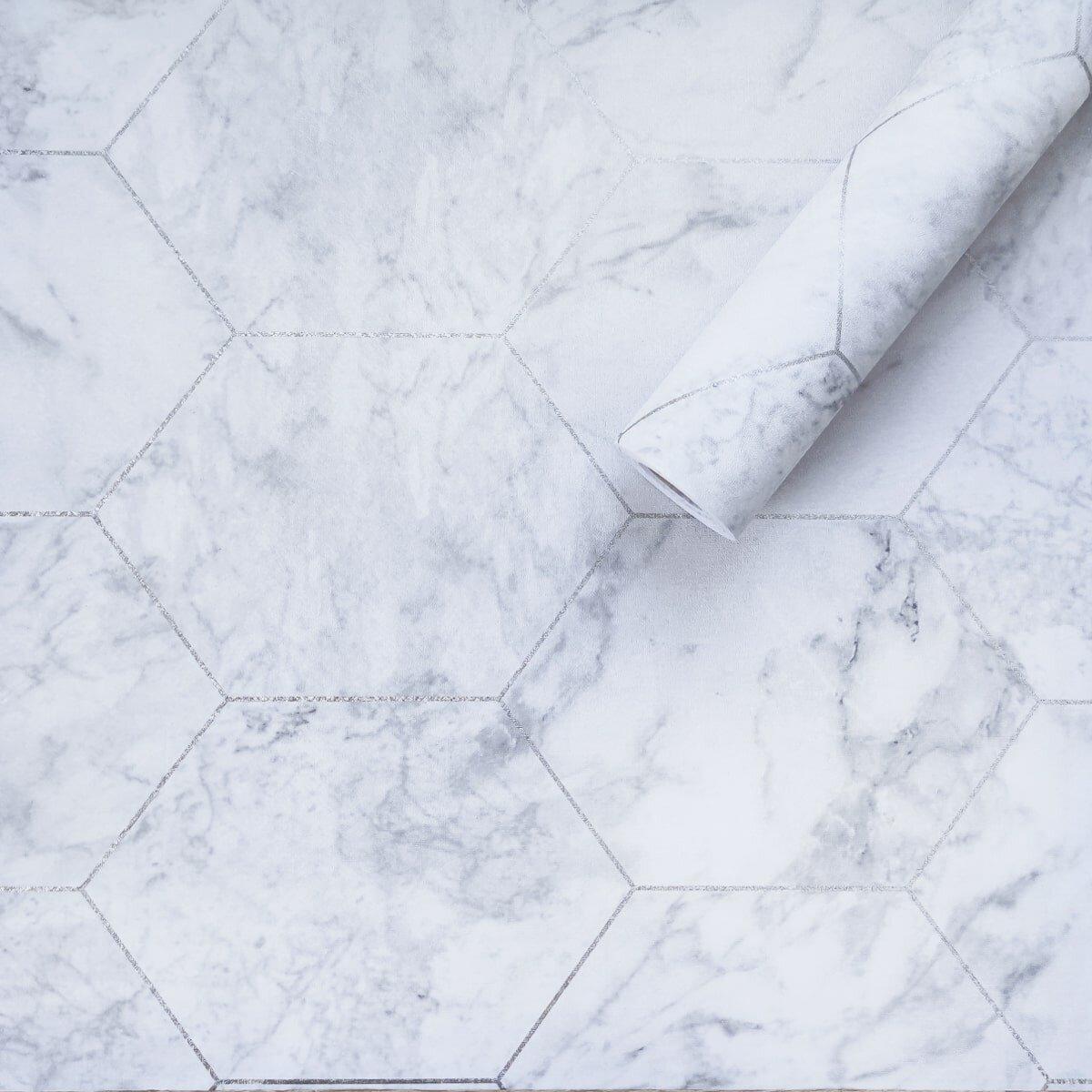 Самоклеющаяся пленка серый мрамор серебряные соты 0,45х10м