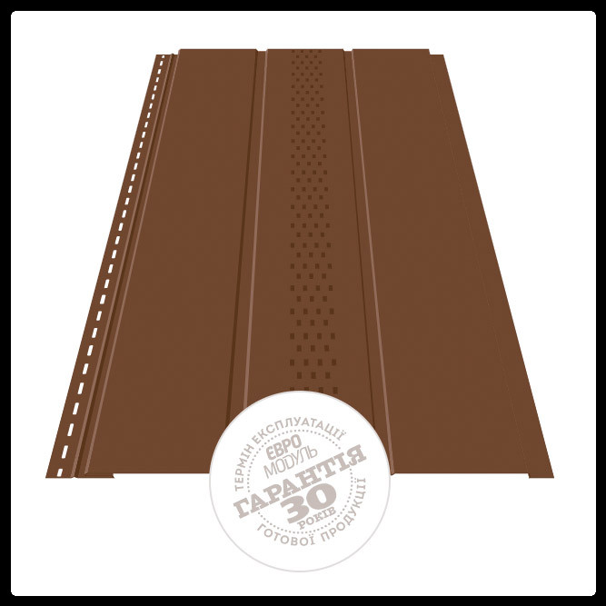 На центральной части панели софита сделана перфорация для улучшенной циркуляции воздуха подкровельного пространства в утепленных крышах. При смонтированном софите перфорация имеется на каждом третьем сегменте. Сайдинг — металлический софит применяется для подшивки карнизных и франтонных свесов крыши.